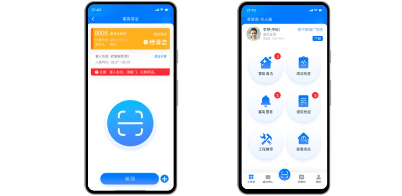 研發客房智能化管理應用,實現任務分配、清潔統計、崗位協同等功能;B1巡檢方案多點巡查,管理過程透明化