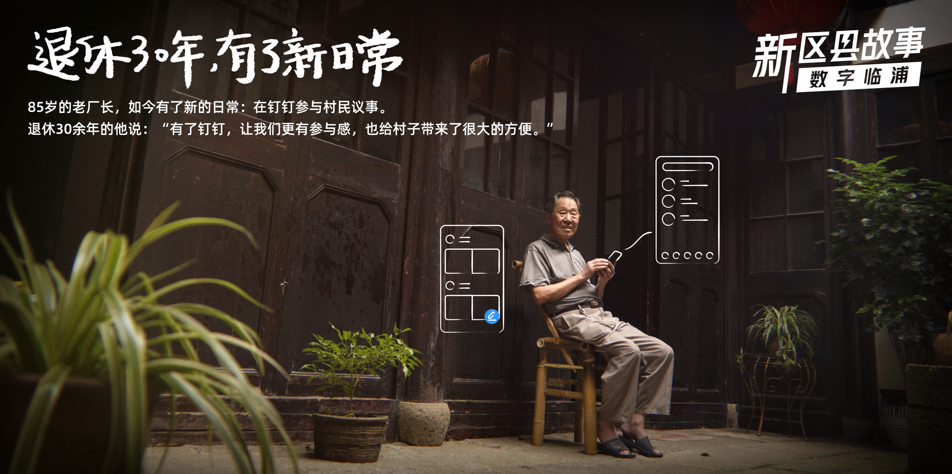 85歲的老廠長,如今有了新的日常:在釘釘參與村民議事。退休30余年的他說:“有了釘釘,讓我們更有參與感,也給村子帶來了很大的方便。”