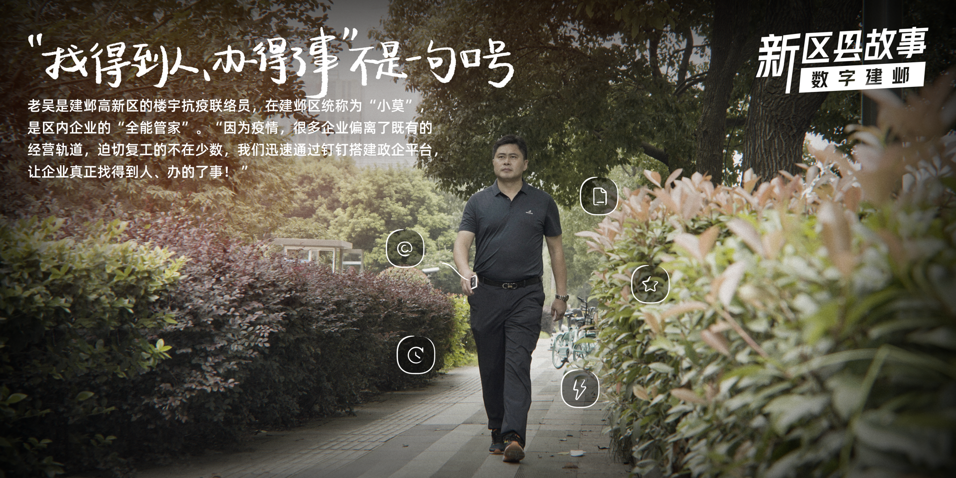 老吳是建鄴高新區的樓宇抗疫聯絡員,在建鄴區統稱為“小莫”,是區內企業的“全能管家”。“因為疫情,很多企業偏離了既有的經營軌道,迫切復工的不在少數,我們迅速通過釘釘搭建政企平臺,讓企業真正找得到人、辦的了事!”