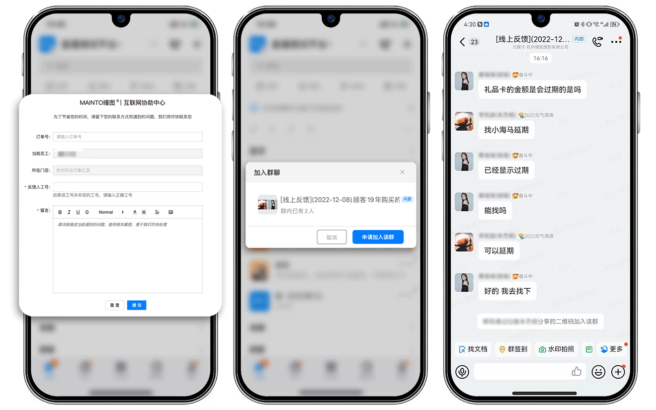 門店員工面臨門店問題處理、客戶疑難咨詢等情況時,往往依賴于層層信息傳遞,整個過程冗長繁瑣,需要與不同的人員進行多輪溝通,問題處理效率和問題閉環(huán)率低。